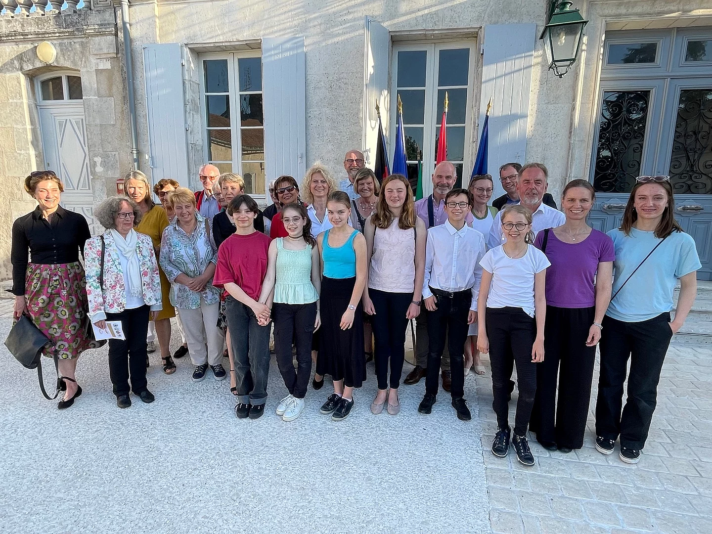 An den Feierlichkeiten zum Partnerschaftsjubiläum im Mai in Barbezieux nahmen sieben Schülerinnen und Schüler der städtischen Musikschule Wolfratshausen teil. Zusammen mit der Geigenlehrerin Sigrid von Kracht waren sie 13 Stunden mit dem Zug unterwegs, um in Barbezieux am Festwochenende aufzutreten.