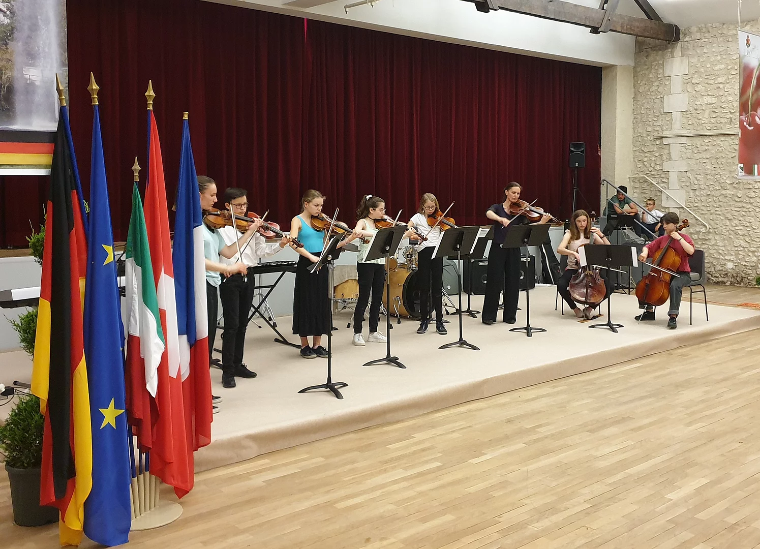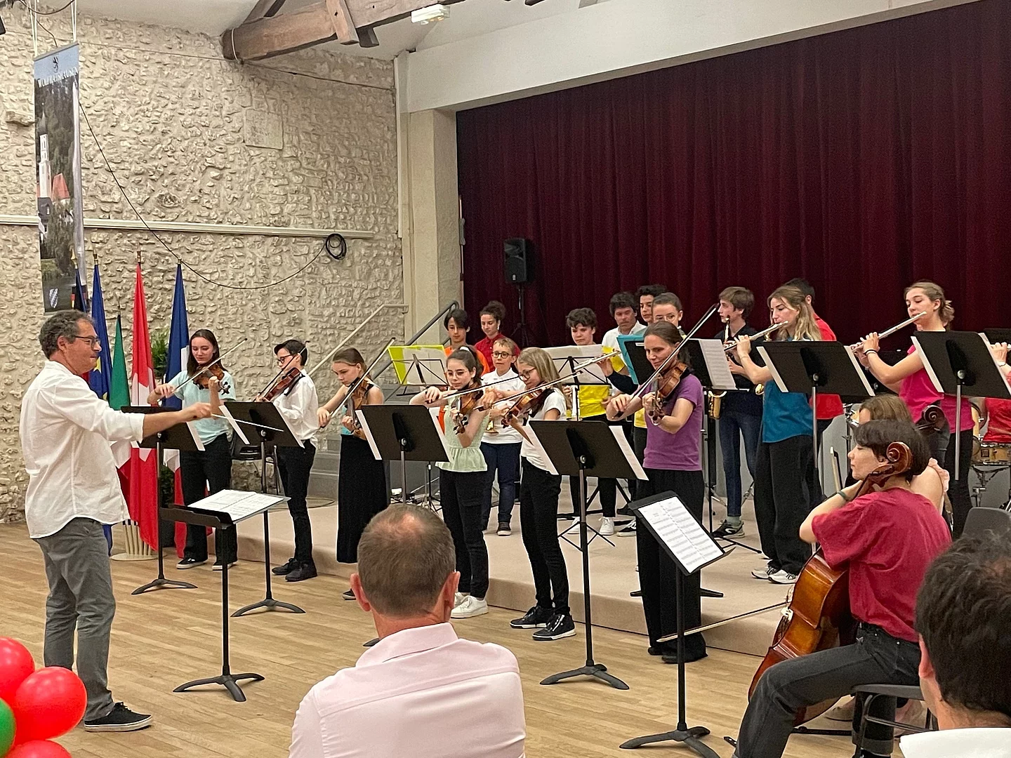 Am Festabend und zur offiziellen Unterzeichnung der Freundschaftsurkunde spielten die Musikerinnen und Musiker gemeinsam mit den französischen Musikschülern aus Barbezieux.