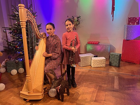 Sie hören eine Schülerin aus der Trompetenklasse von Gero Hensel mit Harfenbegleitung. Hier geht´s zum Video.