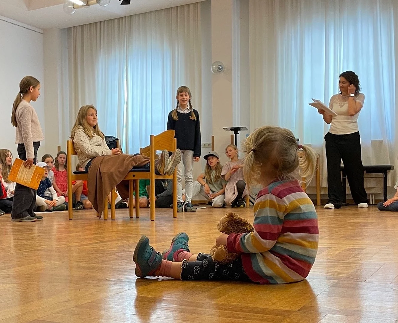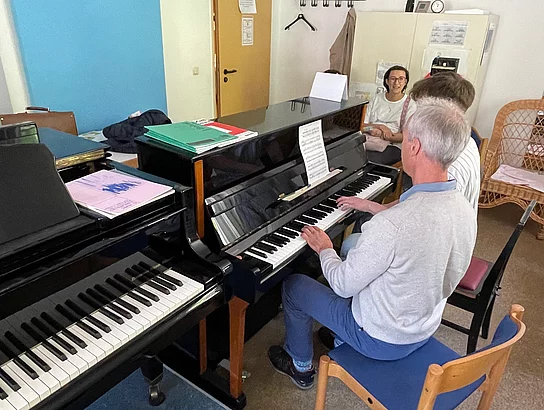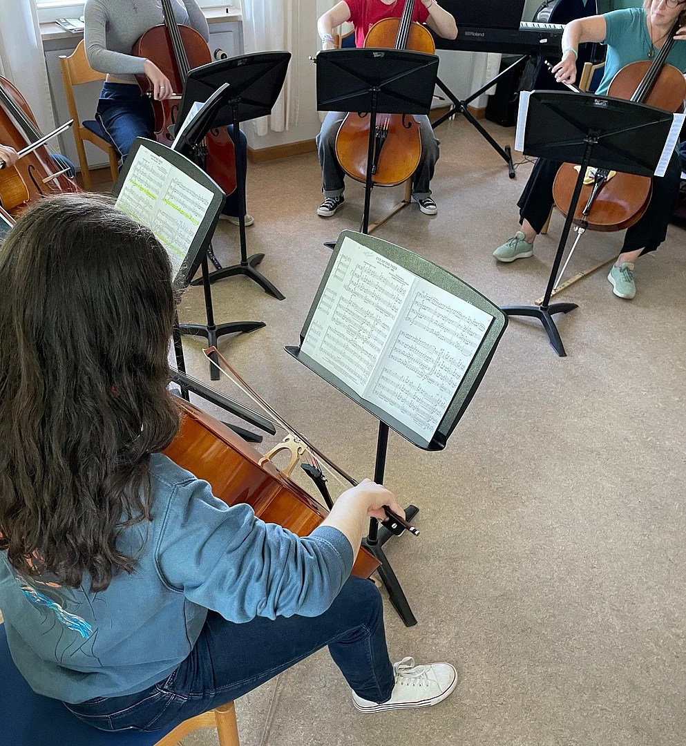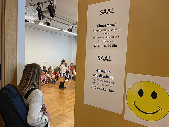 Besonderes Interesse galt dem Kinderchor, dessen Probe von zahlreichen Zuschauerinnen und Zuschauern verfolgt wurde. Auch der Klavierunterricht, Gitarrenunterricht und eine Celloprobe standen für Besucher offen. Wer etwas Bewegung wollte, konnte an einer Schnupperstunde Yoga teilnehmen.