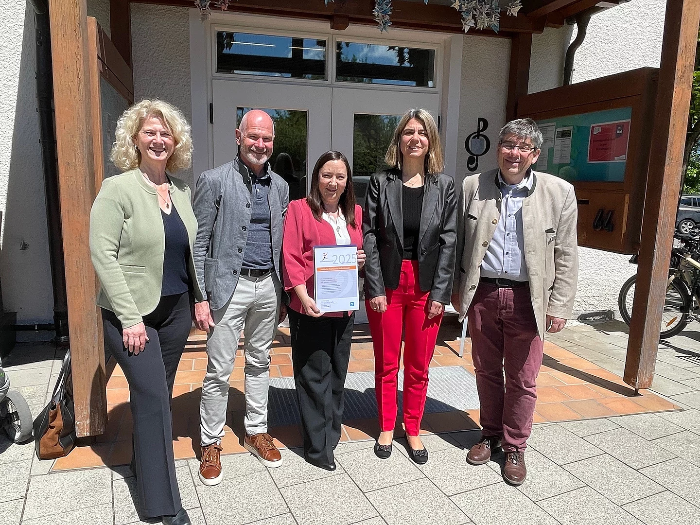 Ein weiterer Höhepunkt des Tages war die Verleihung des Zertifikatsgesunde musikschule®. Damit wird die Musikschule für ihr Engagement in der gesundheitsbewussten Ausbildung ausgezeichnet. 1. Bürgermeister Klaus Heilinglechner, Geschäftsführerin Kirsten Vogler und Referatsleiter Martin Melf gratulierten der Musikschulleiterin Dr. Petra Varlan-Hein und der Musikpädagogin Stela Trambeva zur Auszeichnung.