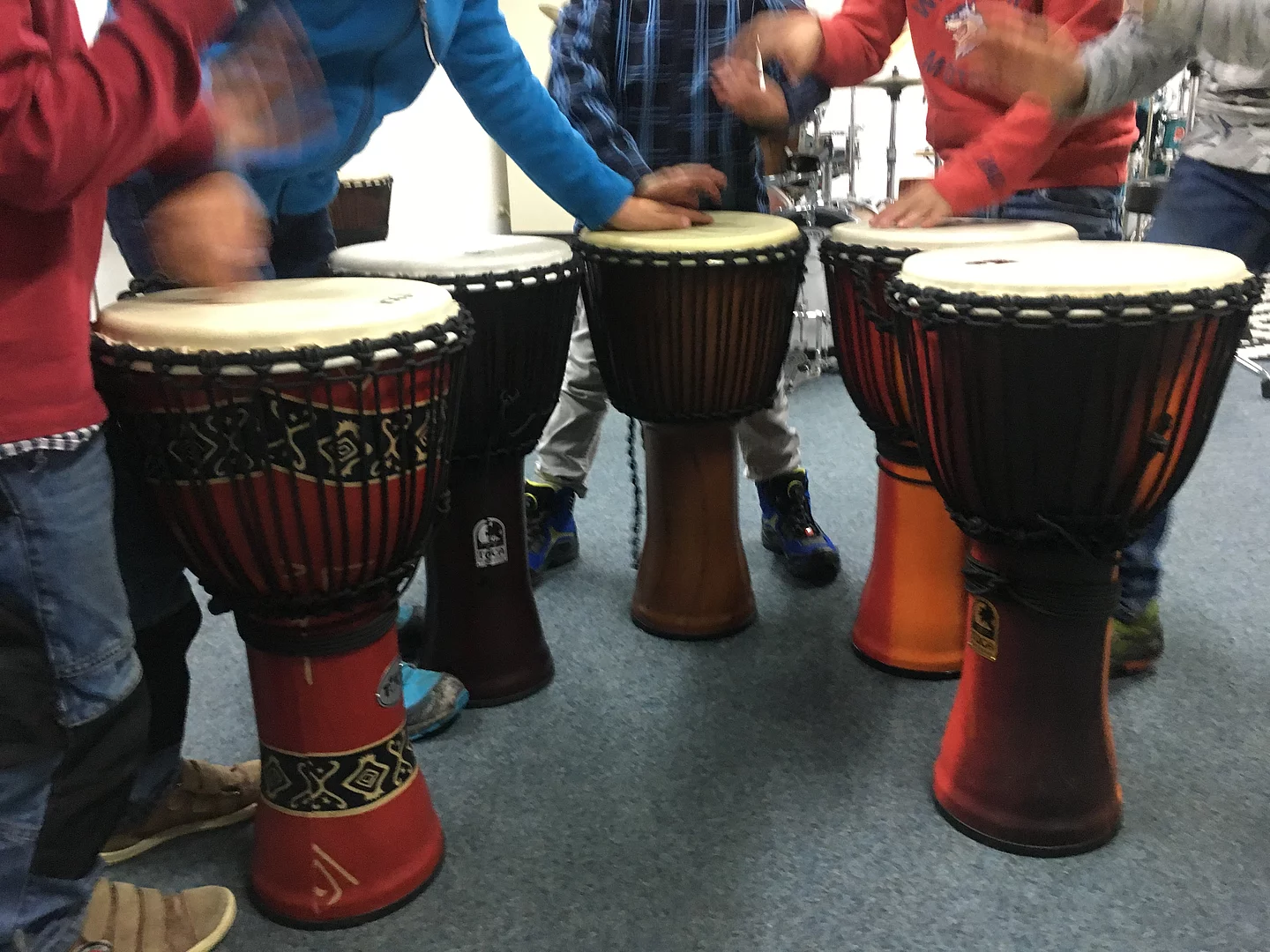 Gruppenunterricht für Schüler im Alter von 5-7 Jahren: „Bambini Groove” ist genau die richtige Gruppe für kleine wilde Drummer! Wir trommeln zunächst nicht auf dem Drumset, sondern auf Djembe, Cajon oder Congas und (mit Stöcken) auf dem Practice Pad. Es geht um Rhythmus oder eben: um den Groove!